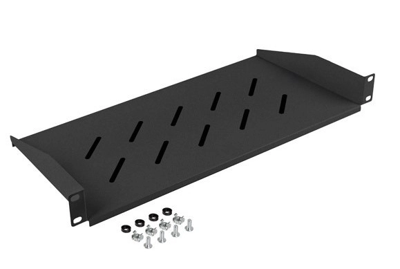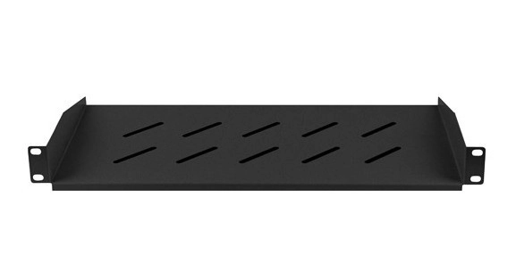 Wentylowana powierzchnia z podłużnymi otworami wspiera efektywne chłodzenie i pomaga utrzymać stabilną temperaturę pracy. Nośność do 25 kg zapewnia odpowiedni zapas dla wzmacniaczy, switchy, UPS, NVR/DVR i innego osprzętu.