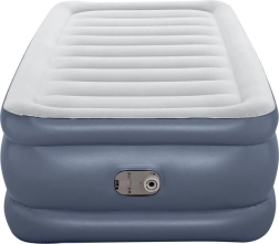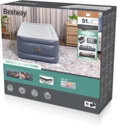Materac dmuchany Bestway oferuje nowoczesną wygodę dla maksymalnego komfortu snu dzięki zintegrowanej elektrycznej pompce, umożliwiającej napompowanie w zaledwie 3 minuty.