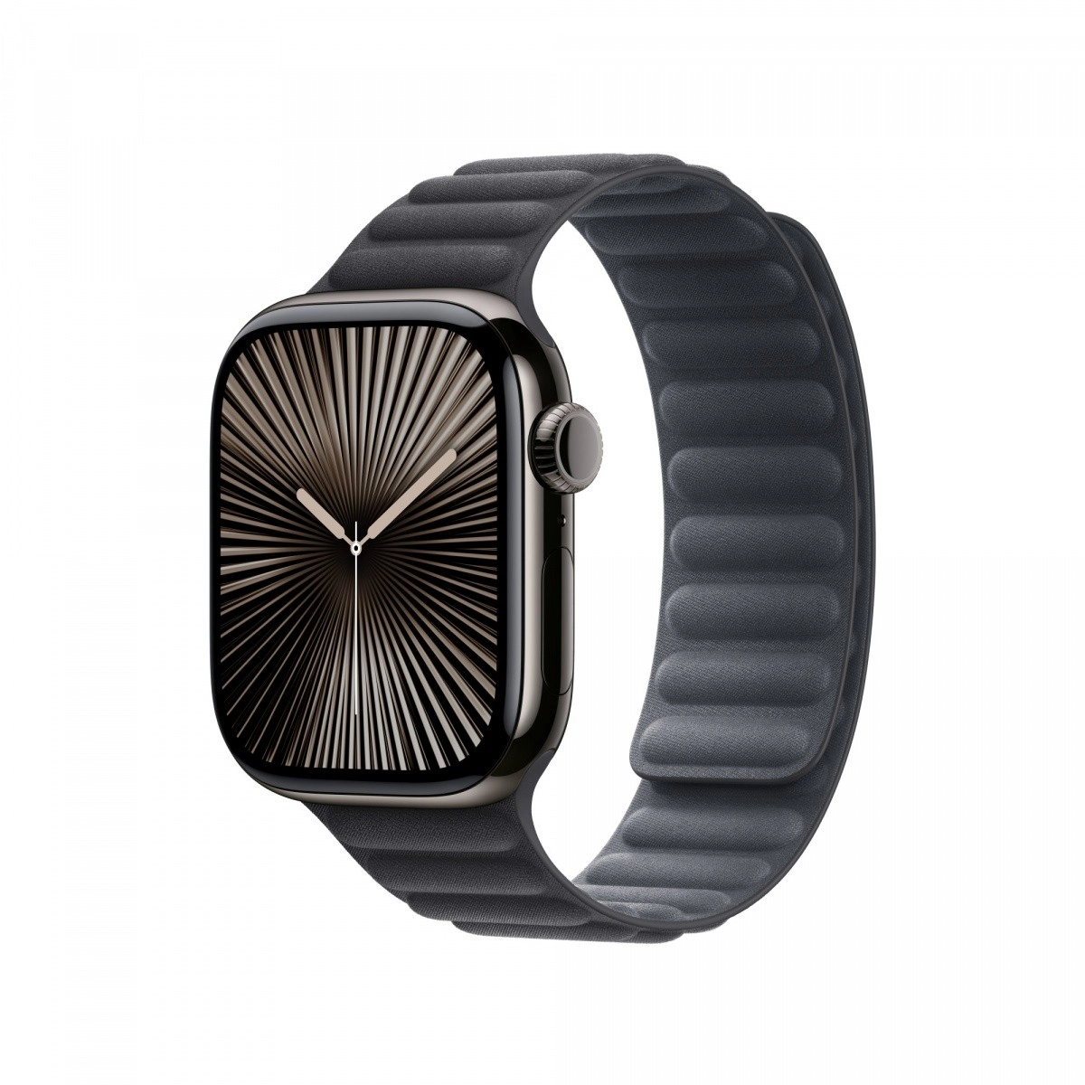 Żłobkowany magnetyczny pasek z tkaniny FineWoven elegancko otula nadgarstek i jest wyposażony w specjalnie zaprojektowane magnesy, które utrzymują pasek wygodnie napięty przez cały dzień.