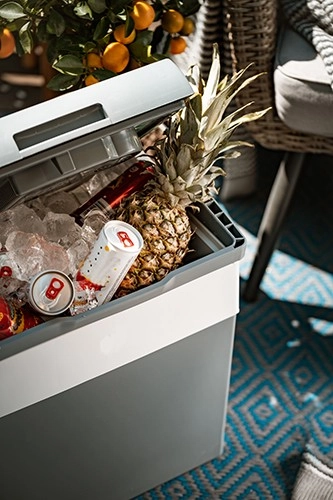 Utrzymuj swoje napoje chłodne także w podróży dzięki naszej 28‑litrowej przenośnej lodówce, która oferuje elastyczne opcje zasilania i łatwe przenoszenie.