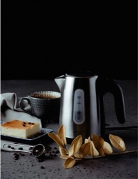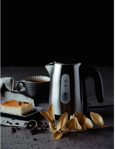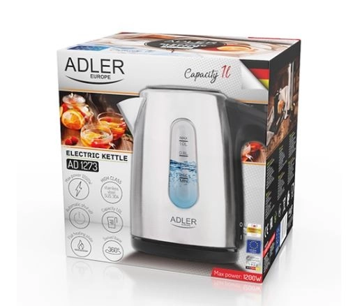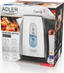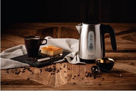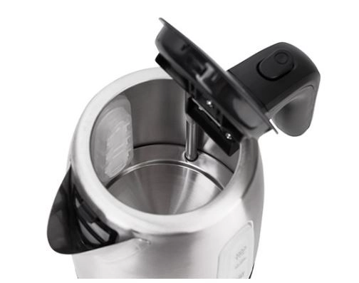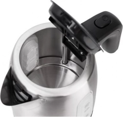 Czajnik wyróżnia się eleganckim wzornictwem ze stali nierdzewnej oraz czarną plastikową rączką, uzupełniony o sygnalizację LED.