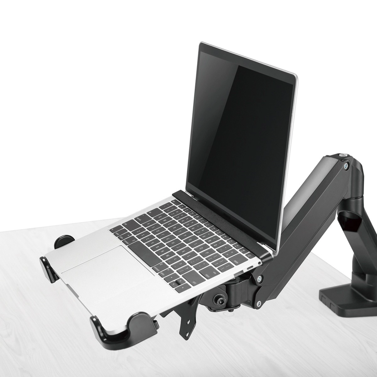 Regulowane ramię umożliwia dostosowanie uchwytu do notebooków z ekranami o przekątnej od 11" do 17" dla maksymalnego komfortu i efektywności.