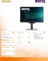 Ciesz się oszałamiającą jakością obrazu z monitorem RD240Q, który oferuje rozdzielczość WQXGA zapewniającą ostre i szczegółowe wyświetlanie.
