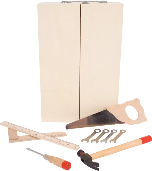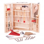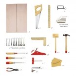 Drewniana walizka z narzędziami zawiera wszystko, czego młody majsterkowicz potrzebuje. Zawiera śrubokręty, piły, klucze, młotki i wiele innych narzędzi. Wykonana z wysokiej jakości materiałów i spełnia europejskie normy bezpieczeństwa.
