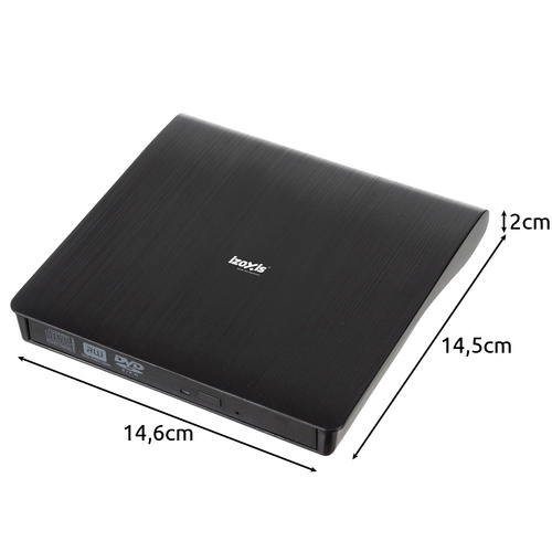 Ten zewnętrzny napęd DVD/CD IZOXIS jest gotowy do użycia zaraz po podłączeniu dzięki funkcji plug and play, co oznacza, że nie jest potrzebna żadna wcześniejsza instalacja. Zapewnia szybki transfer danych dzięki nowoczesnemu interfejsowi USB 3.0, który obsługuje prędkości zapisu i odczytu do 24x dla CD i 8x dla DVD. Jest idealny do backupu, oglądania filmów lub archiwizacji danych.