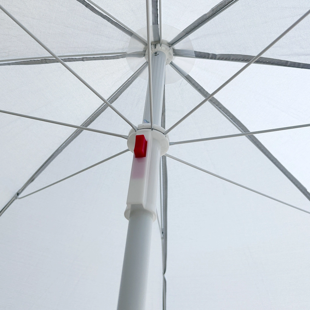 Ten elegancki, szary parasol został zaprojektowany z myślą o wygodnym wypoczynku całej rodziny. Wewnętrzna srebrna warstwa skutecznie odbijająca promieniowanie UV redukuje obciążenie cieplne, dzięki czemu pod czaszą pozostaje przyjemny chłód nawet w upalne dni. Dzięki zakresowi wysokości 140–180 cm łatwo ustawisz cień zgodnie z pozycją słońca.