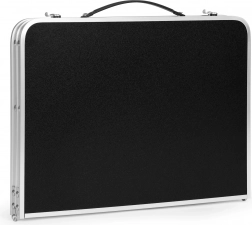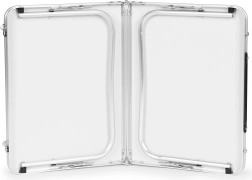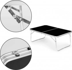 Ten kompaktowy stół jest wyposażony w ochrony przed przypadkowym złożeniem i wygodny uchwyt transportowy, co gwarantuje łatwość obsługi. Można go złożyć do walizki, co ułatwia transport i przechowywanie.