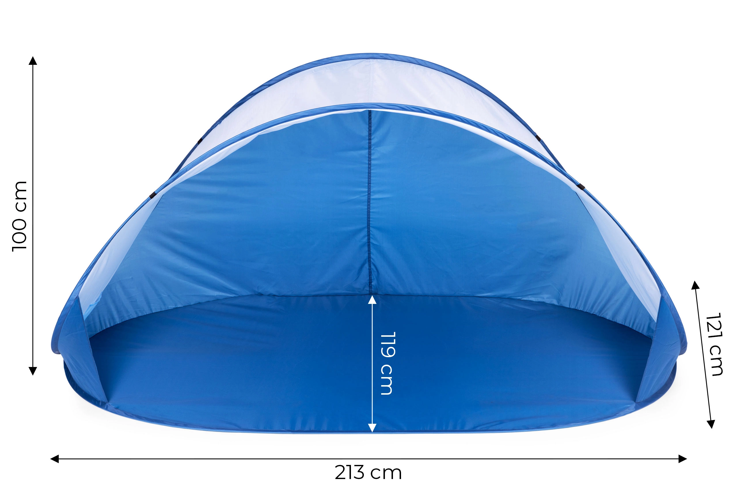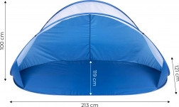 Namiot posiada specjalne punkty mocowania do stabilnego zakotwienia w podłożu. Dzięki wszytym pętlom i dołączonym linkom możesz szybko zabezpieczyć namiot przed wiatrem – zarówno na plaży, jak i w ogrodzie.