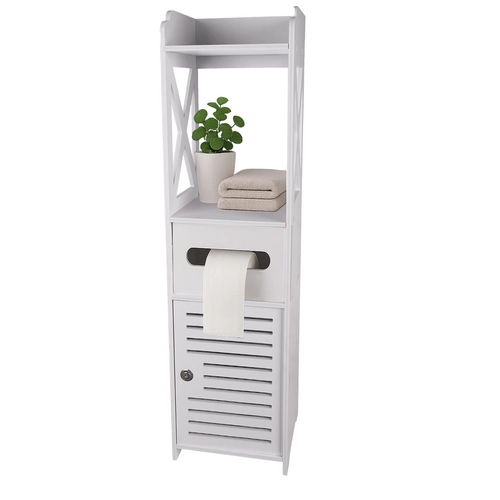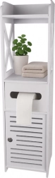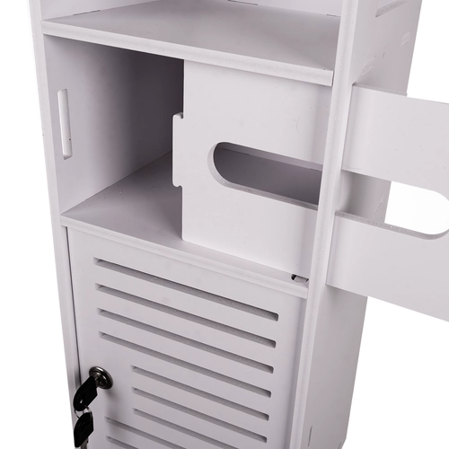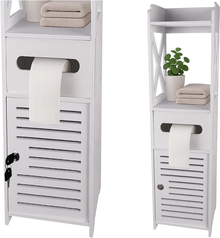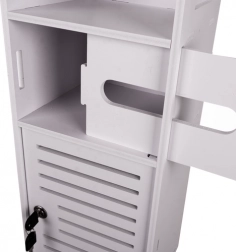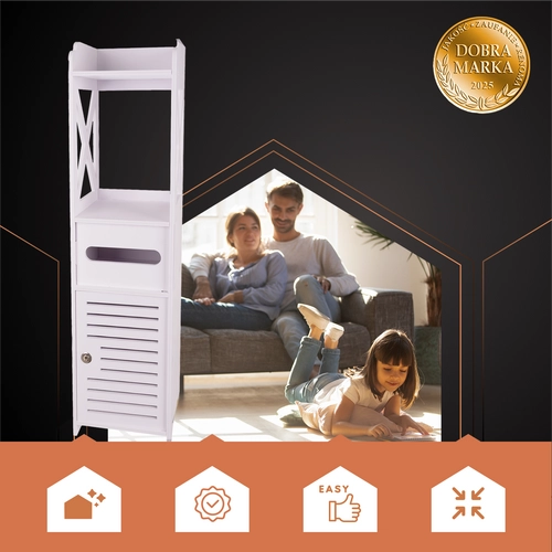 Stojąca szafka łazienkowa w białym kolorze to praktyczne rozwiązanie do przechowywania kosmetyków i środków czystości. Dzięki zamykaniu na klucz chroni zawartość przed dziećmi i ma estetyczny design, który pasuje do każdej łazienki.