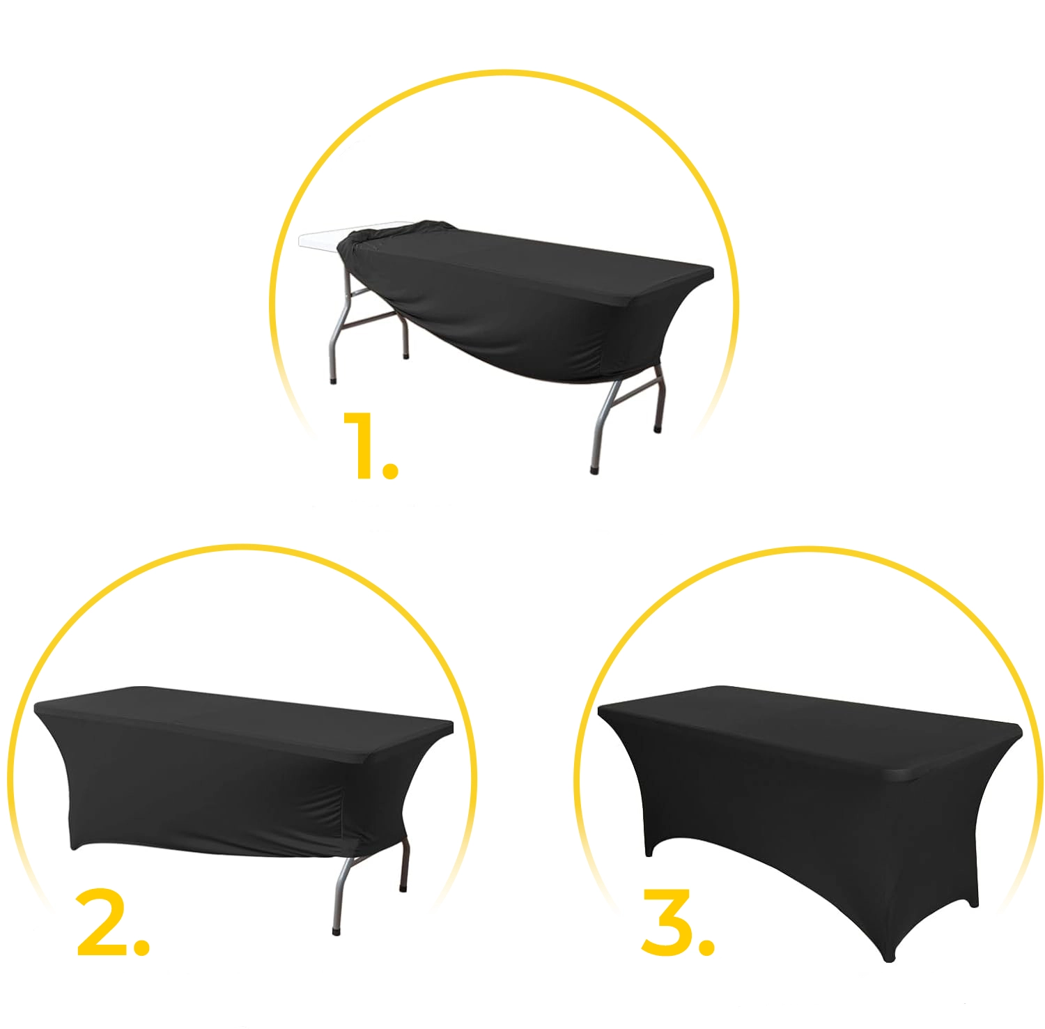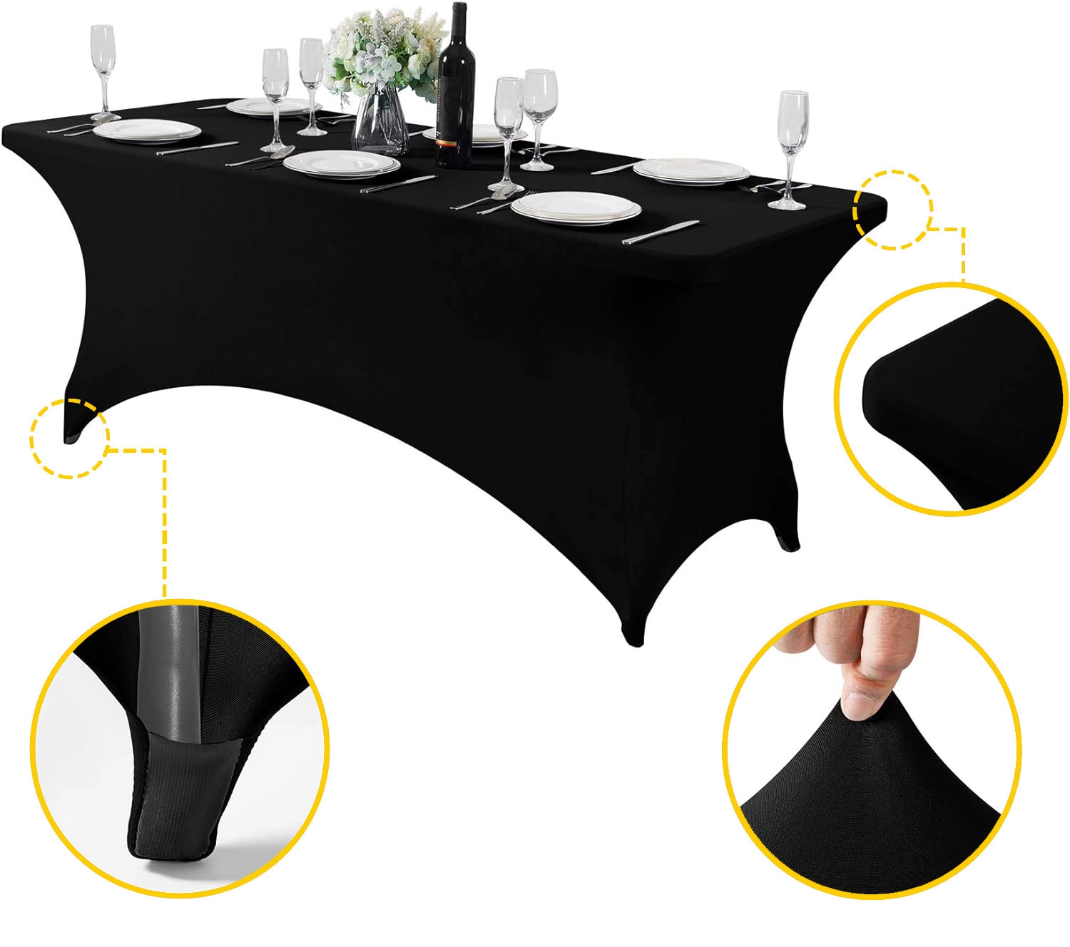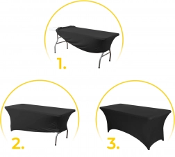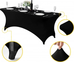 Ten uniwersalny elastyczny pokrowiec na stół jest idealny do stołów o długości 240 cm, dodaje każdej imprezie elegancji i jest odporny na plamy.