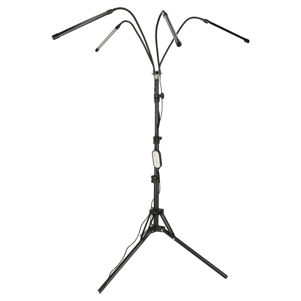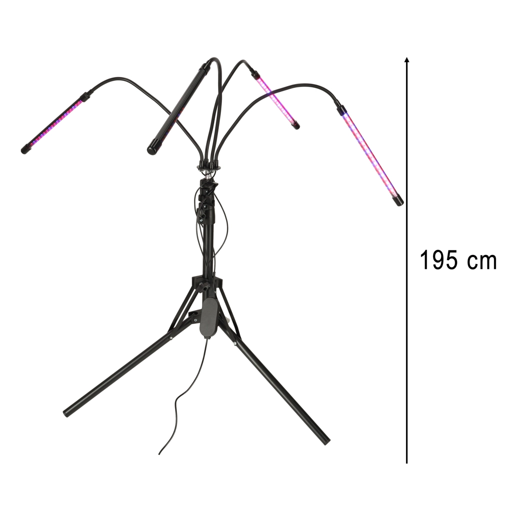 Lampa ma elastyczne ramiona, umożliwiające obrót o 360° oraz regulowany statyw, którego wysokość można zmieniać od 73 do 153 cm. Zestaw jest lekki i łatwy do przenoszenia, co czyni go idealnym wyborem do domowej uprawy.