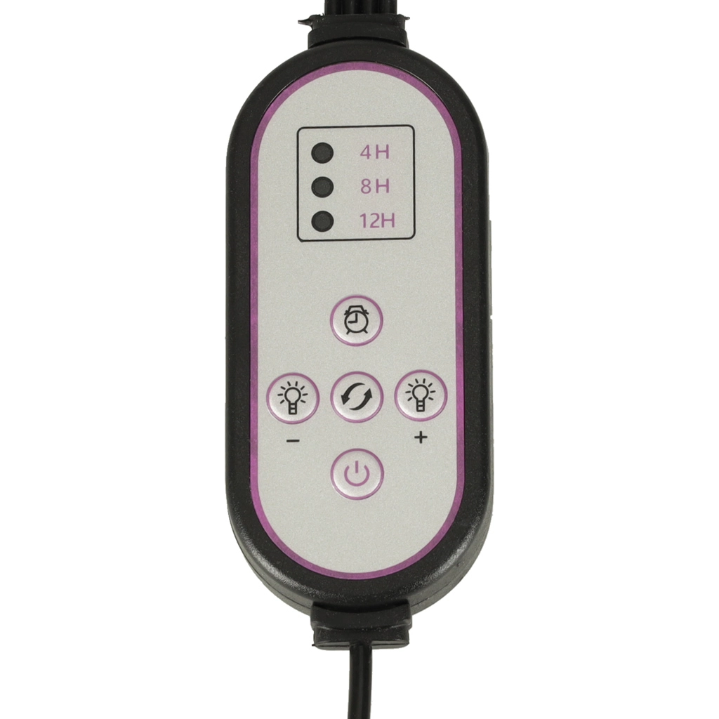 Lampa jest wyposażona w 10 poziomów jasności, które można łatwo regulować. Automatyczny timer pozwala ustawić 4, 8 lub 12 godzin. Posiada także pilot RF oraz możliwość bezpośredniej regulacji na przewodzie.