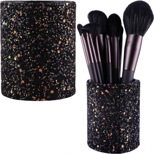 Wykonany z trwałego materiału i pokryty lśniącym brokatem, dodaje elegancji i funkcjonalności. Kubek nadaje się nie tylko do pędzli do makijażu, lecz także do kredek do oczu, tuszy do rzęs, konturówek i innych drobnych akcesoriów kosmetycznych. Dzięki solidnej konstrukcji i odporności na wilgoć świetnie sprawdzi się również w łazience.