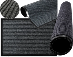 Ta szara, gumowana wycieraczka jest zaprojektowana do codziennego użytku w mieszkaniach, biurach i przestrzeniach komercyjnych. Antypoślizgowa guma zapewnia stabilność na różnych typach podłóg, a wytrzymałe włókna syntetyczne o żebrowanej strukturze skutecznie usuwają piasek, kurz i wilgoć z obuwia.