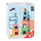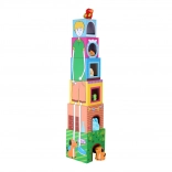 Ta urokliwa wieża do układania z wytrzymałych kartonowych klocków i drewnianych zwierzątek uczy dzieci porządkowania wielkości, szacowania przestrzeni i ćwiczy zręczność. Klocki układa się od największego do najmniejszego w stabilną wieżę o wysokości do ok. 58 cm, a dzięki otworom w klockach dzieci wkładają do nich właściwe zwierzątka.