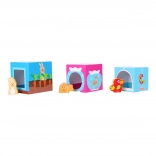 Sześć uroczych drewnianych zwierzątek pasuje do odpowiednich otworów w klockach. Dzieci ćwiczą sortowanie, dopasowywanie oraz zabawę w odgrywanie ról.
