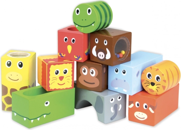- 11 drewnianych dźwiękowych klocków