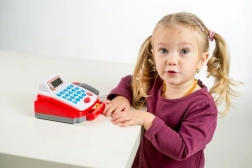Ta kompaktowa cyfrowa kasa to świetne uzupełnienie każdego dziecięcego sklepiku. Dzięki realistycznym funkcjom dzieci poćwiczą pracę z pieniędzmi, skanowanie towarów oraz podstawowe działania. Kasa wykonana jest z wytrzymałego plastiku, łatwa w obsłudze, a efekty świetlne i dźwiękowe przyciągają uwagę od pierwszego spojrzenia.