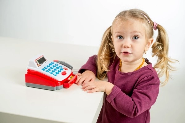 Zabawna i realistyczna kasa dla małych sprzedawców. Oferuje działający kalkulator z wyświetlaczem, otwieraną szufladę na pieniądze oraz czytnik kodów kreskowych ze światłem i dźwiękiem. Idealna zabawka wspierająca rozwój wyobraźni, liczenia i umiejętności społecznych.