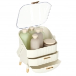 Przedstawiamy Ci biały organizer kosmetyczny z szufladkami, który pomoże Ci utrzymać Twoje kosmetyki i biżuterię w idealnym porządku. Ten organizer wyposażony jest w dwie pojemne szufladki i przezroczystą pokrywę, która chroni Twoje rzeczy przed kurzem i jednocześnie pięknie je eksponuje. Elegancka forma tego organizera ze złotymi detalami nada każdej łazience czy toaletce luksusowy wygląd.