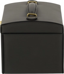 Ta stylowa szkatułka łączy nowoczesny minimalizm z praktyczną funkcjonalnością. Solidna konstrukcja z tekstylną powierzchnią, złotymi okuciami i wygodnym uchwytem ułatwia przenoszenie, a miękka wyściółka wewnętrzna chroni biżuterię przed zarysowaniami. Wewnętrzne lusterko pozwala szybko dopasować dodatki bez potrzeby sięgania po osobne lustro.