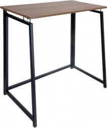 Czarna metalowa rama w profilu A oraz blat w dekorze drewna tworzą minimalistyczne i trwałe miejsce do pracy.