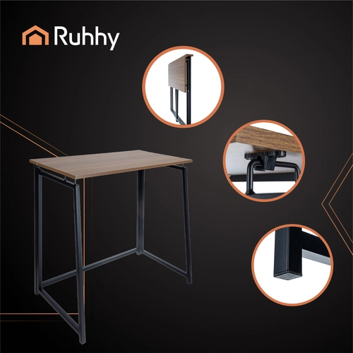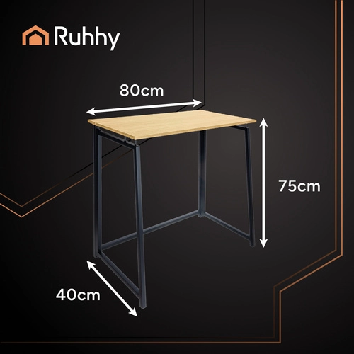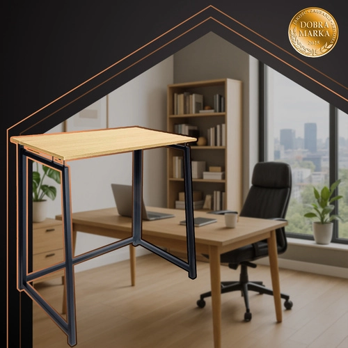 Kompaktowe składane biurko RUHHY w stylu industrialnym łączy oszczędność miejsca, szybkie rozkładanie w kilka sekund oraz stabilną metalową konstrukcję z dekorem drewna. Idealne do home office, nauki i małych mieszkań.