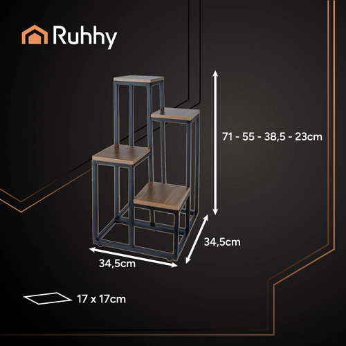 Stylowy stojący kwietnik RUHHY to czteropoziomowa konstrukcja, która pozwala wystawić więcej roślin na małej przestrzeni. Nowoczesny design z metalową ramą i drewnianymi półkami pasuje do każdego wnętrza. Stabilna i solidna struktura jest w stanie udźwignąć aż 50 kg obciążenia i jest wyposażona w ochronę podłogi dzięki regulowanym stopkom.
