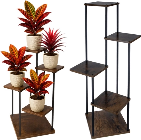 Stojak na kwiaty zawiera 5 poziomów, co pozwala na prezentację większej liczby roślin bez zajmowania zbyt dużo miejsca.