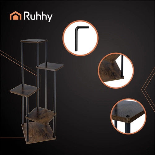 Stojak na kwiaty RUHHY dostarcza funkcjonalność i styl do Twojego domu. Dzięki pięciu poziomowym konstrukcjom można wyznaczyć miejsce dla roślin na małej powierzchni z nowoczesnym designem, który zawiera metalową konstrukcję i drewniane półki. Solidna metalowa rama wytrzymuje do 75 kg masy, co zapewnia stabilność i trwałość stojaka. Dla bezpieczeństwa podłogi wyposażony jest w ochronne nóżki, które zapobiegają zarysowaniom i umożliwiają wyrównanie stojaka.