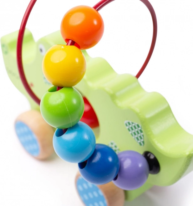 Zabawka oferuje dzieciom możliwość rozwijania drobnej motoryki podczas przesuwania koralików po drucianej strukturze.