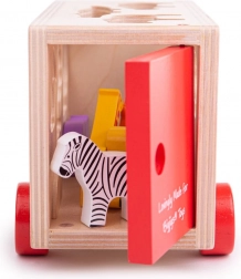 Drewniana ciężarówka działa jako segregator kształtów, dzięki czemu dzieci mogą rozwijać swoje umiejętności w rozpoznawaniu wzajemnych kształtów.