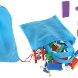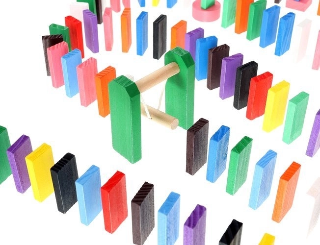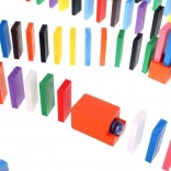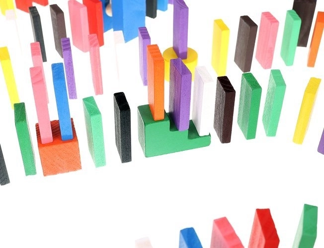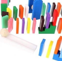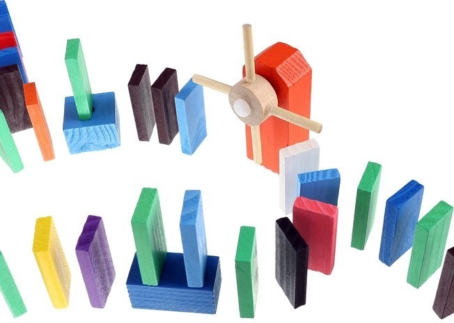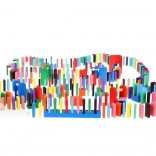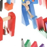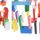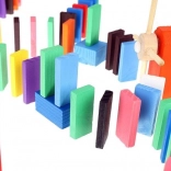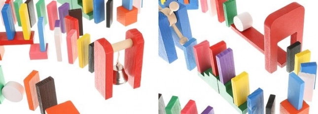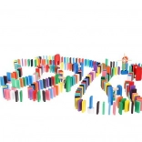 Zestaw zaprojektowano tak, aby pobudzał kreatywność dziecka, umożliwiając tworzenie różnych konstrukcji, takich jak zwierzęta, domy, pojazdy i wiele innych. Zestaw zawiera także wiele dodatkowych elementów, które poszerzają możliwości budowania. Tymi elementami są na przykład huśtawka, schody, wiatrak, mosty i kilka innych części. Drewniane klocki domino są bardzo wytrzymałe, a przede wszystkim bezpieczne dla dzieci! Każdy klocek ma zaokrąglone krawędzie i jest pokryty specjalną farbą, która nie farbuje i nie zawiera żadnych toksycznych ani chemicznych substancji.