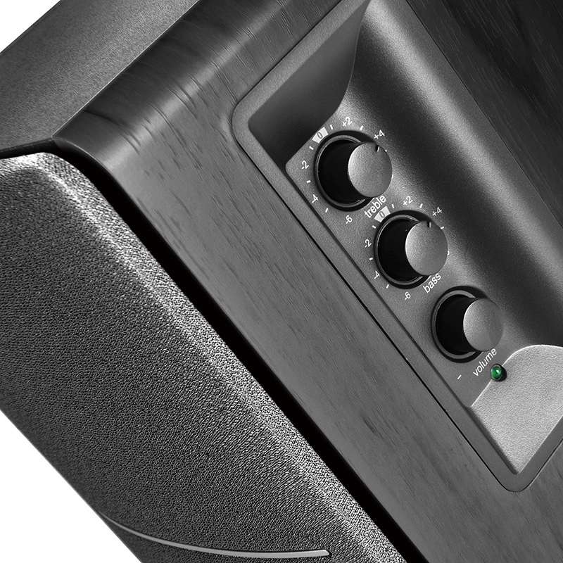 Z tymi głośnikami doświadczysz dźwięku, który perfekcyjnie łączy klasyczną jakość z zaawansowaną technologią. Dostosuj brzmienie za pomocą pokręteł regulacji basów, wysokich tonów i głośności. W zestawie znajduje się także praktyczny pilot zdalnego sterowania dla wygodnej obsługi dźwięku. Dostosuj wysokie tony i basy do swoich potrzeb w zakresie od -6 do +6 dB.