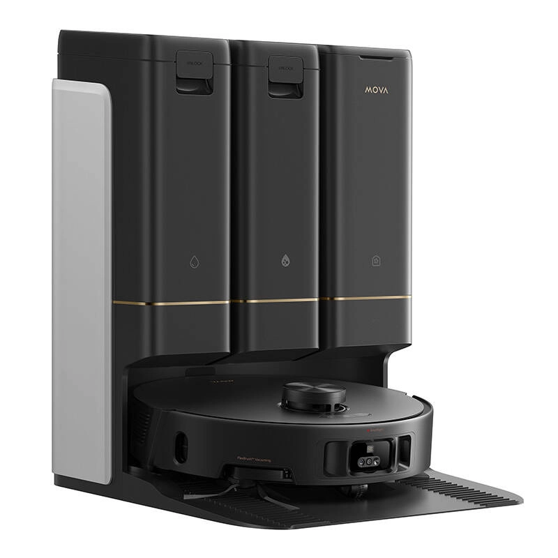 Automatyczna konserwacja – stacja dokująca ładuje i czyści robota, a system samoczyszczący dba o mop dla łatwiejszego użytkowania.