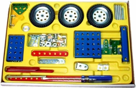 Odkryj legendarną czeską konstrukcyjną MERKUR, która łączy zabawę z nauką. Zestaw z 174 solidnymi metalowymi częściami, kółkami, śrubkami i nakrętkami umożliwia zbudowanie motocykla terenowego, motocykla z wózkiem bocznym oraz zabawnego trójkołowca. Dzięki przejrzystej instrukcji poradzą sobie nawet początkujący konstruktorzy.
