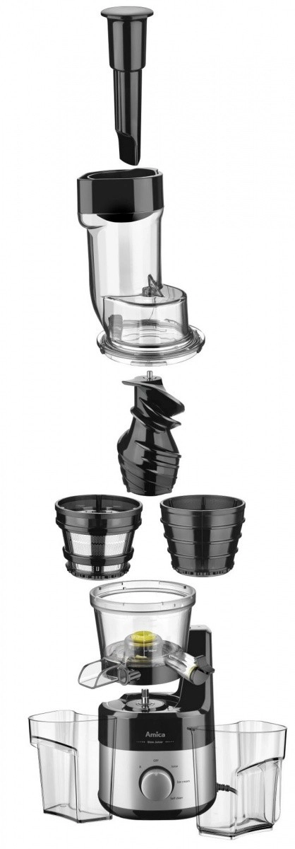 Wyciskarka wolnoobrotowa Amica XL oferuje wiele funkcji, które ułatwiają przygotowanie zdrowych napojów: