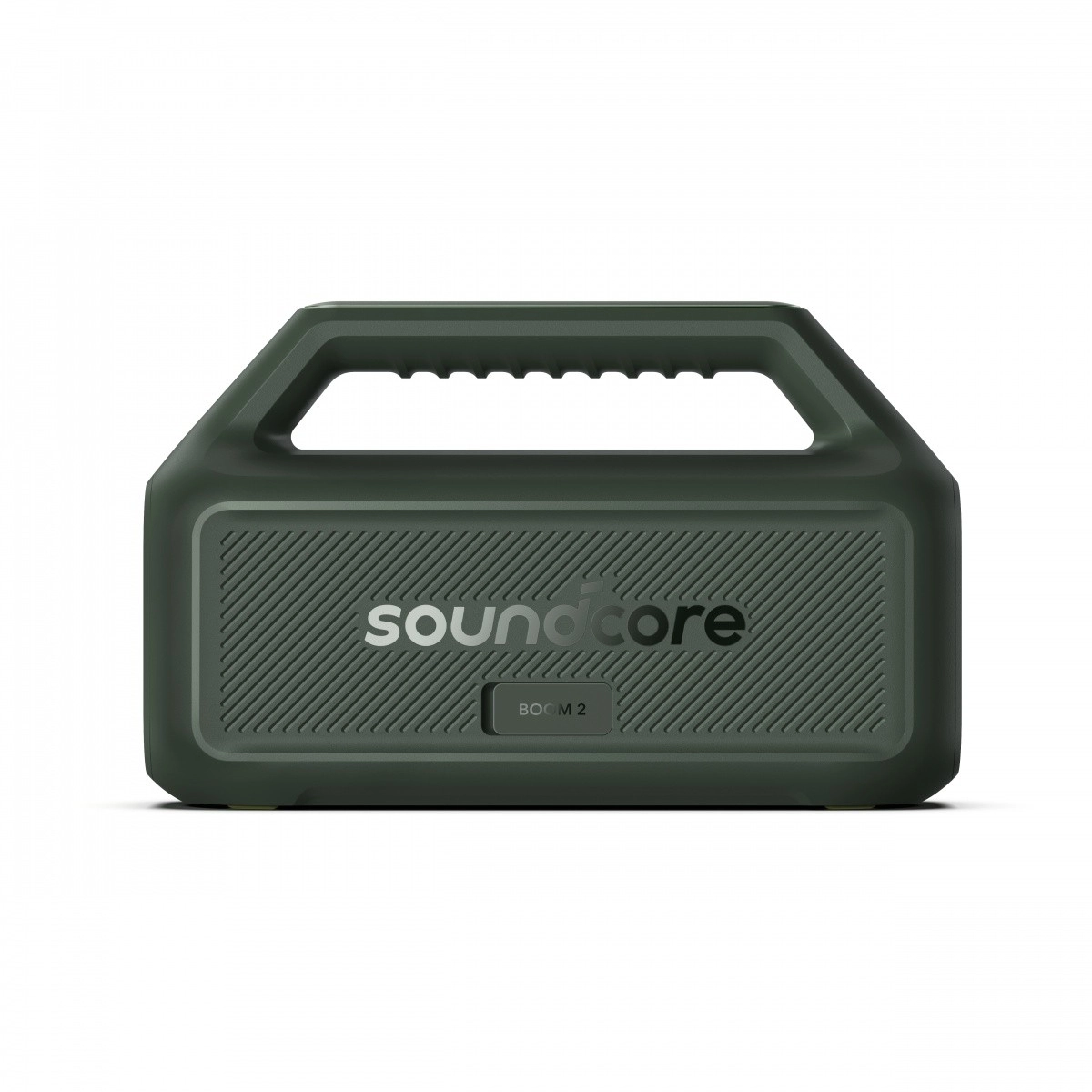 Zielony głośnik Soundcore Boom 2 oferuje świetne brzmienie i nowoczesny design. Ciesz się ulubioną muzyką gdziekolwiek, z wysoką jakością dźwięku i wytrzymałą konstrukcją.
