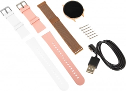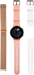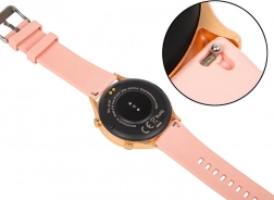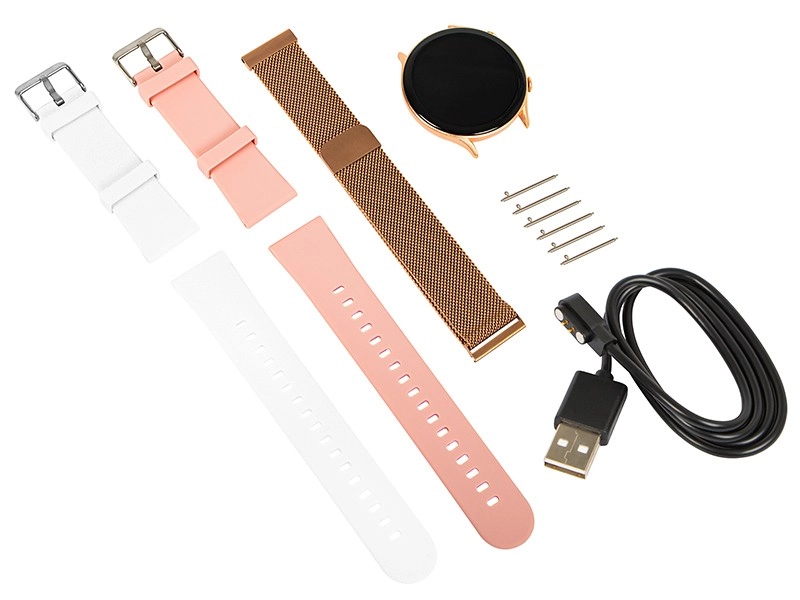 Inteligentny zegarek X19 różowy to doskonały dodatek na każdy dzień. Dzięki trzem wymiennym paskom - złoty, biały i różowy - łatwo dostosujesz swój wygląd do nastroju. Ciesz się ekranem dotykowym o rozdzielczości 360x360 px, który zapewnia ostry i wyraźny obraz.