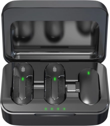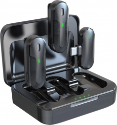 Mikrofony są wyposażone w praktyczne klipsy do łatwego przypięcia do odzieży. Etui ładujące zapewnia ochronę i wydłuża czas pracy, umożliwiając czterokrotne doładowanie, dzięki czemu możesz nagrywać przez cały dzień bez obaw o rozładowanie urządzeń.