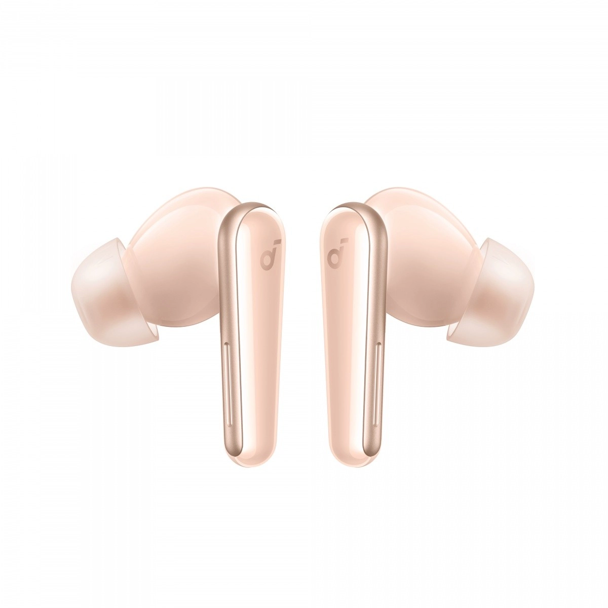 Te eleganckie bezprzewodowe słuchawki w delikatnym różowym kolorze oferują wygodne noszenie z dotykowymi elementami na łodydze dla łatwej obsługi.