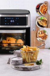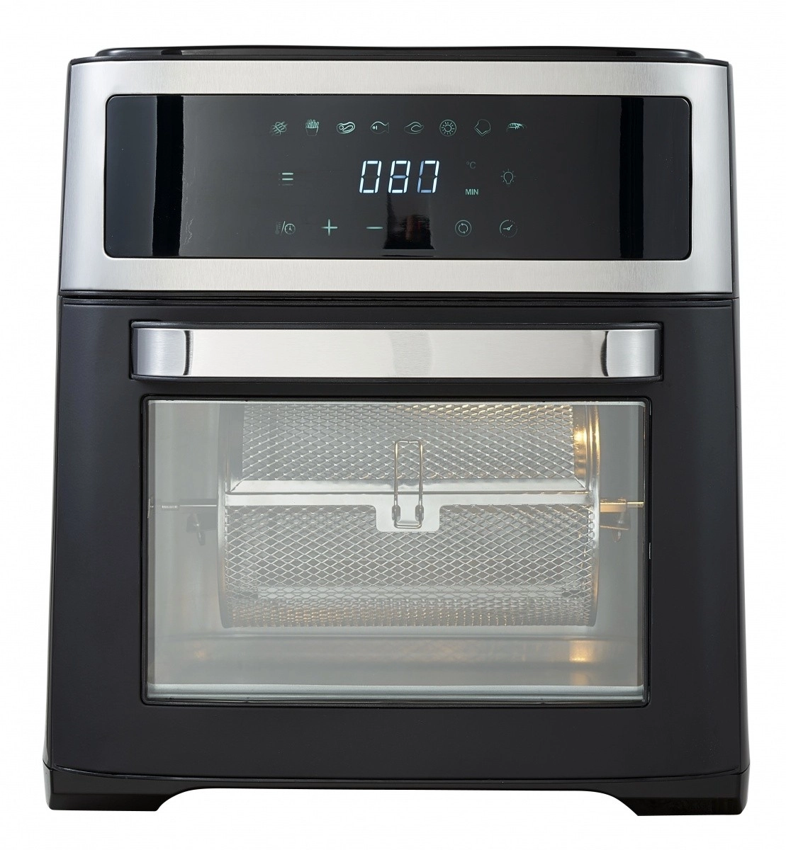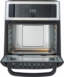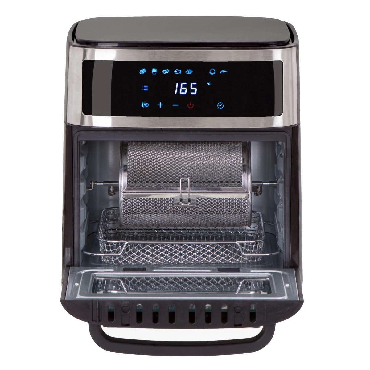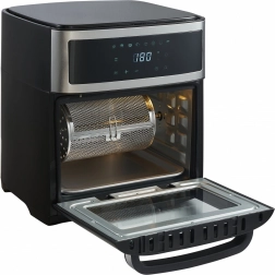 Frytkownica posiada obrotowy kosz do łatwego przygotowywania mniejszych produktów, takich jak frytki czy krewetki. Pojemność 13 litrów jest idealna do przygotowywania posiłków dla całej rodziny. Obsługę ułatwia czytelny biały wyświetlacz LED oraz panel dotykowy z możliwością opóźnionego startu od 1 do 720 minut.
