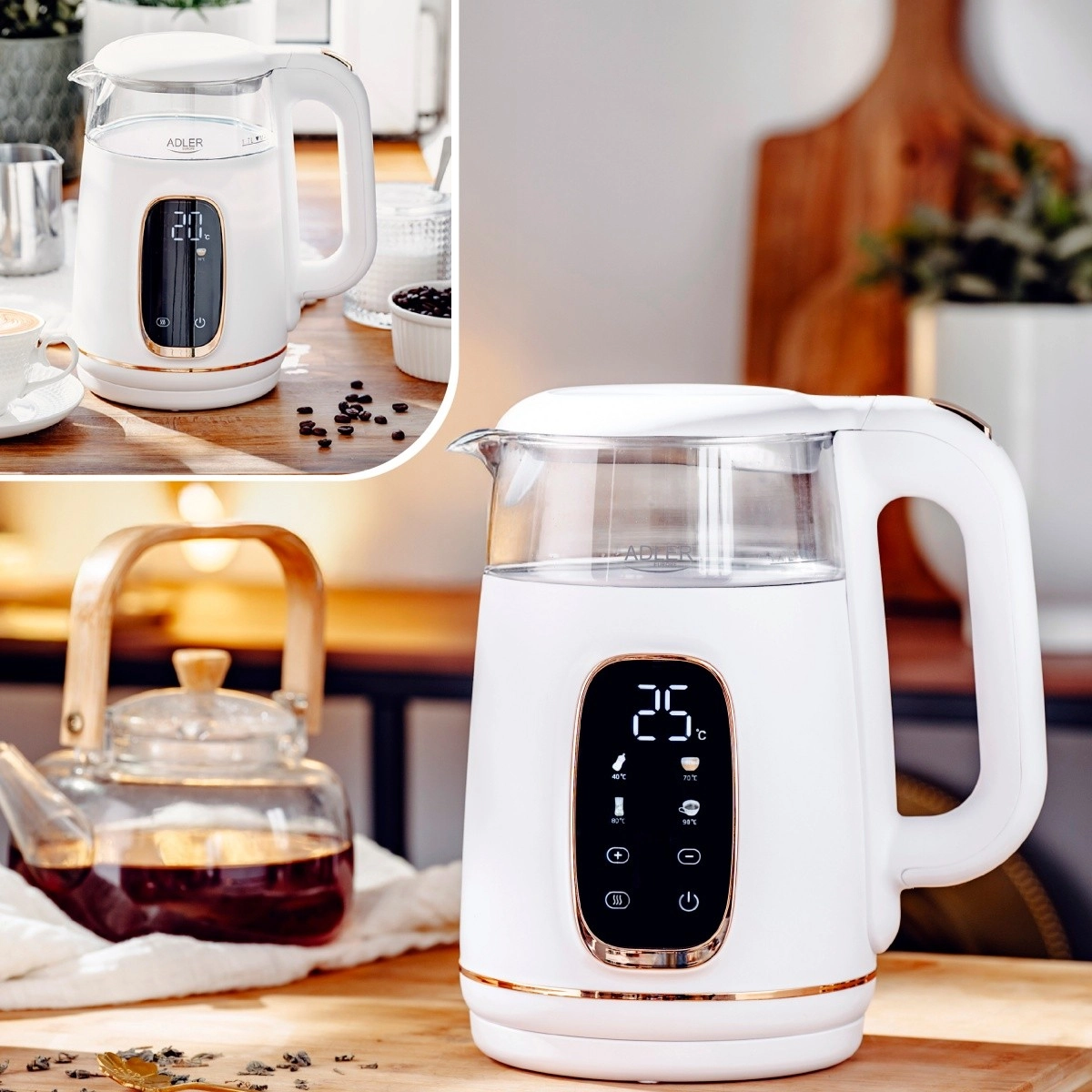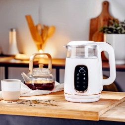 Czajnik został zaprojektowany z naciskiem na wygodę użytkowania. Wyposażono go w intuicyjny panel dotykowy i kolorowy wyświetlacz LED, który nie tylko ułatwia obsługę, ale także nadaje urządzeniu nowoczesny charakter. Dzięki funkcji podtrzymywania temperatury aż do 2 godzin zawsze będziesz mieć gotową ciepłą wodę na kolejny kubek ulubionego napoju.