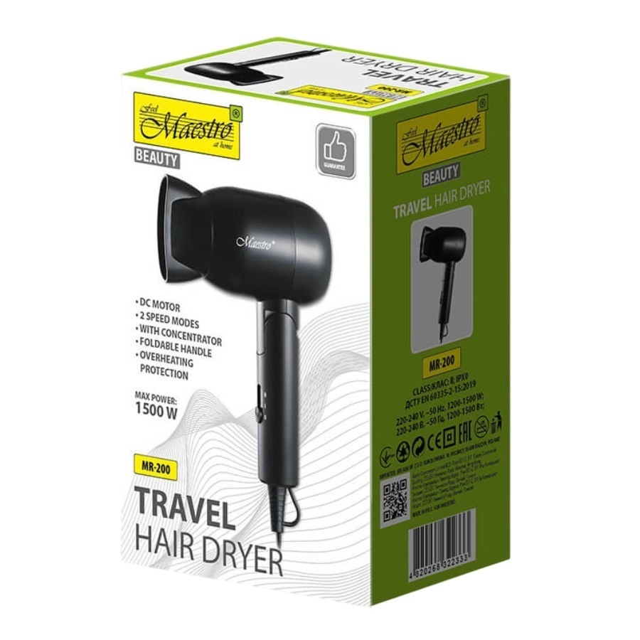 Jeśli szukasz praktycznej, niezawodnej i kompaktowej suszarki podróżnej do włosów, Maestro MR-200 to świetny wybór!