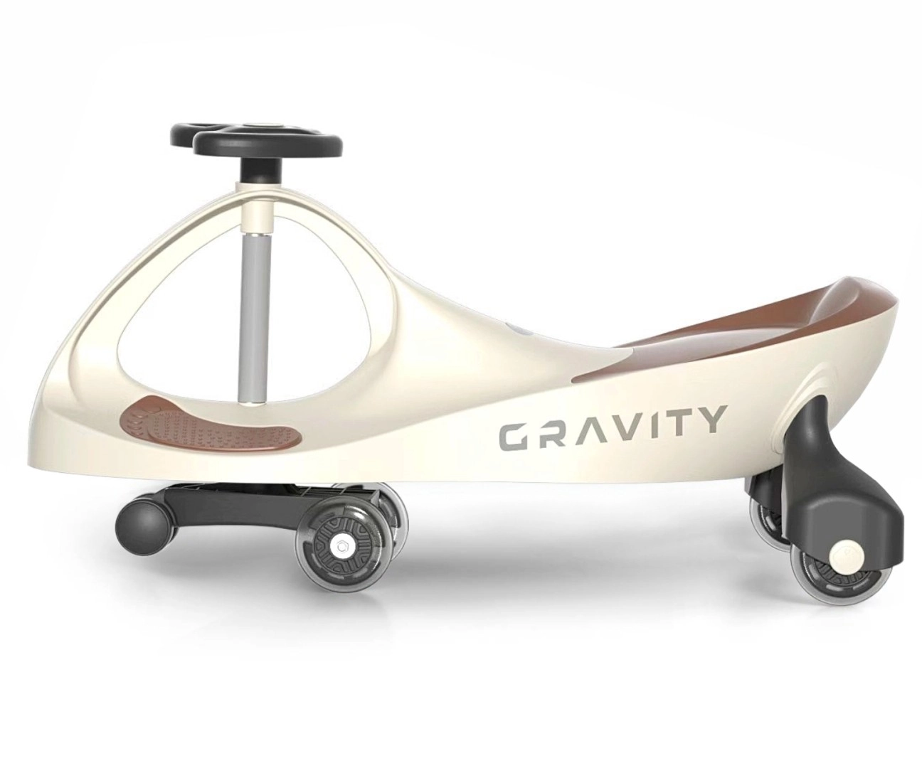Jeździk Gravity to innowacyjny produkt, który umożliwia poruszanie się dzięki grawitacji i ruchom ciała dziecka, bez potrzeby użycia baterii ani pedałów. Wystarczy obracać kierownicą, aby poruszać się do przodu niczym za sprawą czarodziejskiej różdżki.