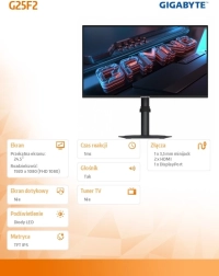 Gigabyte G25F2 oferuje nowoczesny gamingowy design z wąskimi ramkami i doskonałą jakością obrazu, która zadowoli nawet wymagających graczy.