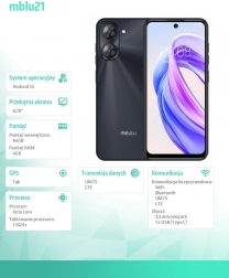 Meizu Mblu 21 to telefon, który łączy funkcjonalność i styl z dużym 6,79" wyświetlaczem IPS. Korzystaj z ostrego i płynnego obrazu w rozdzielczości 1640 x 720 pikseli i z odświeżaniem 90 Hz, dzięki czemu przeglądanie treści to prawdziwa przyjemność. Z ośmiordzeniowym procesorem Unisoc T606 i 4 GB RAM smartfon z łatwością radzi sobie z wielozadaniowością, a 64 GB pamięci można rozszerzyć kartą microSD.