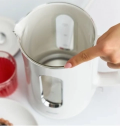 Nieprzegrzewająca się zewnętrzna powierzchnia czajnika zapewnia bezpieczne użytkowanie, a oryginalny brytyjski wyłącznik STRIX podnosi trwałość nawet przy częstym krótkotrwałym gotowaniu.