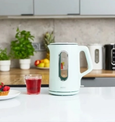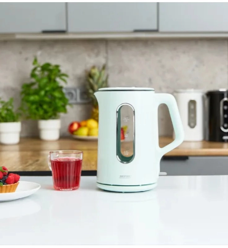 Wyobraź sobie czajnik, który nie tylko szybko zagotuje wodę na ulubiony napój, ale także upiększy Twoją kuchnię. Ten model ma podświetlane wnętrze, które zmienia kolor na niebieski podczas gotowania wody, tworząc atmosferę w pomieszczeniu i zapewniając cichą pracę dzięki podwójnym ściankom.