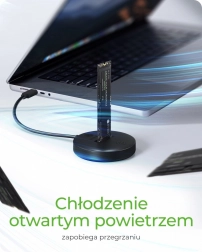 Wydajne chłodzenie: Otwarty system zapewnia lepsze chłodzenie dzięki swobodnemu przepływowi powietrza wokół dysku, co pomaga utrzymać stabilną temperaturę pracy.